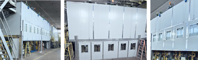 Adicionalmente, os painéis são pré-fabricados na HERGEN, o que oferece uma série de benefícios: redução significativa na quantidade de mão de obra necessária para a montagem, diminuição do tempo de parada e, consequentemente, maior agilidade na instalação e rápida retomada da produção. A pré-fabricação também assegura um controle de qualidade mais rigoroso, resultando em um produto final com maior confiabilidade e durabilidade.