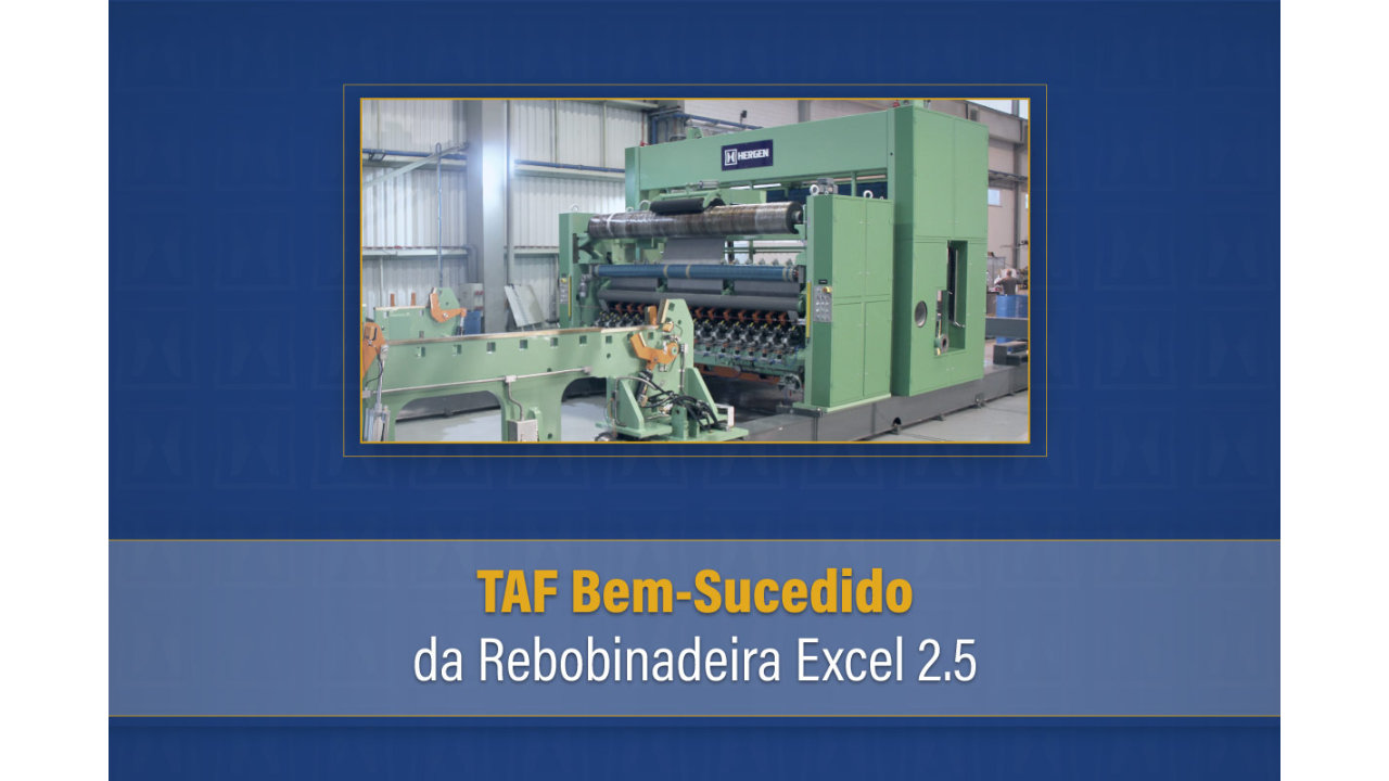 A Rebobinadeira Excel 2.5, passou por uma série de testes operacionais e de segurança. Durante o TAF, foram verificados aspectos cruciais como o desempenho da máquina, a conformidade com as normas de segurança mais avançadas, além de garantir o excelente controle de tensão da folha e o sistema de acionamento regenerativo, que promove eficiência energética e alta performance.