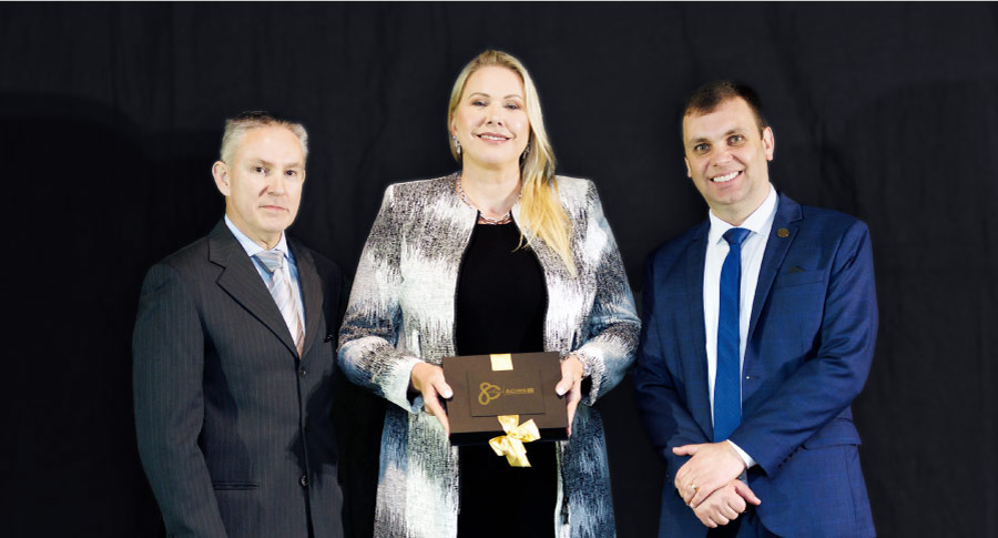 O reconhecimento ao legado do Sr. Germano foi recebido no palco por sua filha e Diretora Financeira da HERGEN, Monica Purnhagen, que representou a família e a HERGEN em um momento de emoção e orgulho.